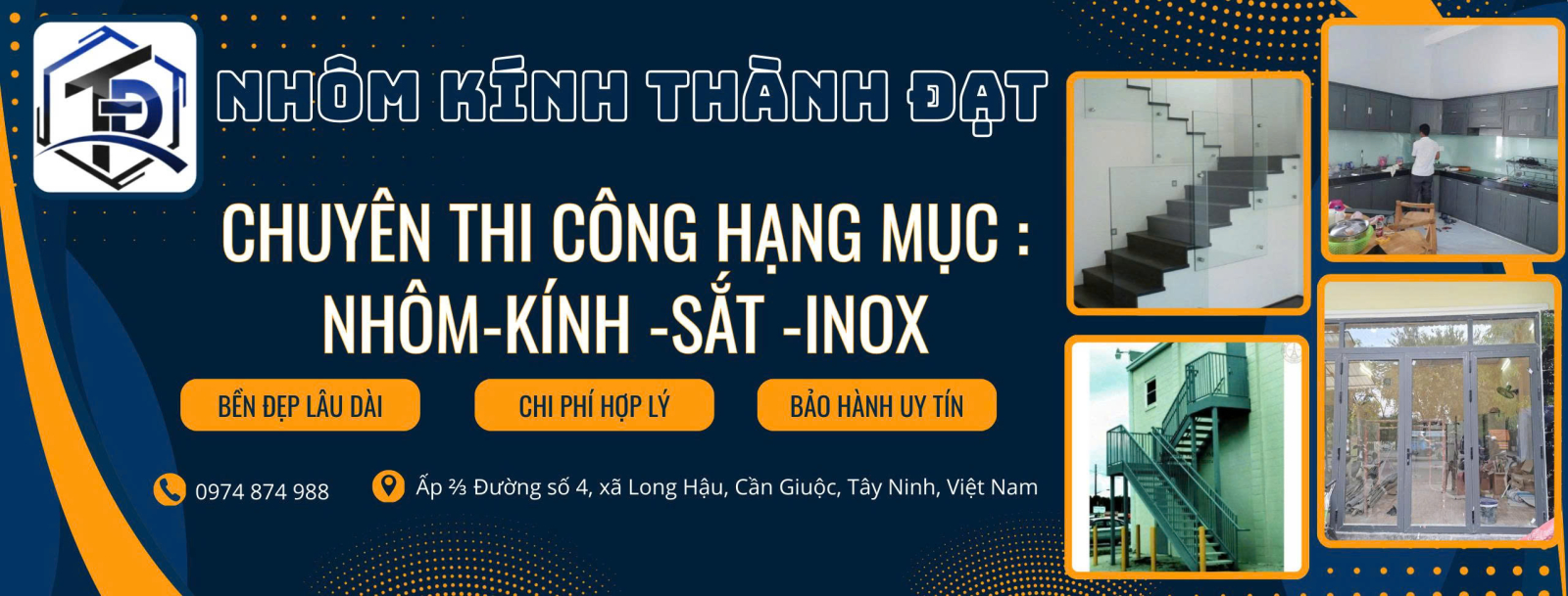 Nhôm Kính Thành Đạt chuyên thi công cửa nhôm Xingfa, kính cường lực, vách ngăn và tủ bếp cao cấp. Cam kết vật liệu chính hãng, thi công nhanh, giá gốc tại xưởng